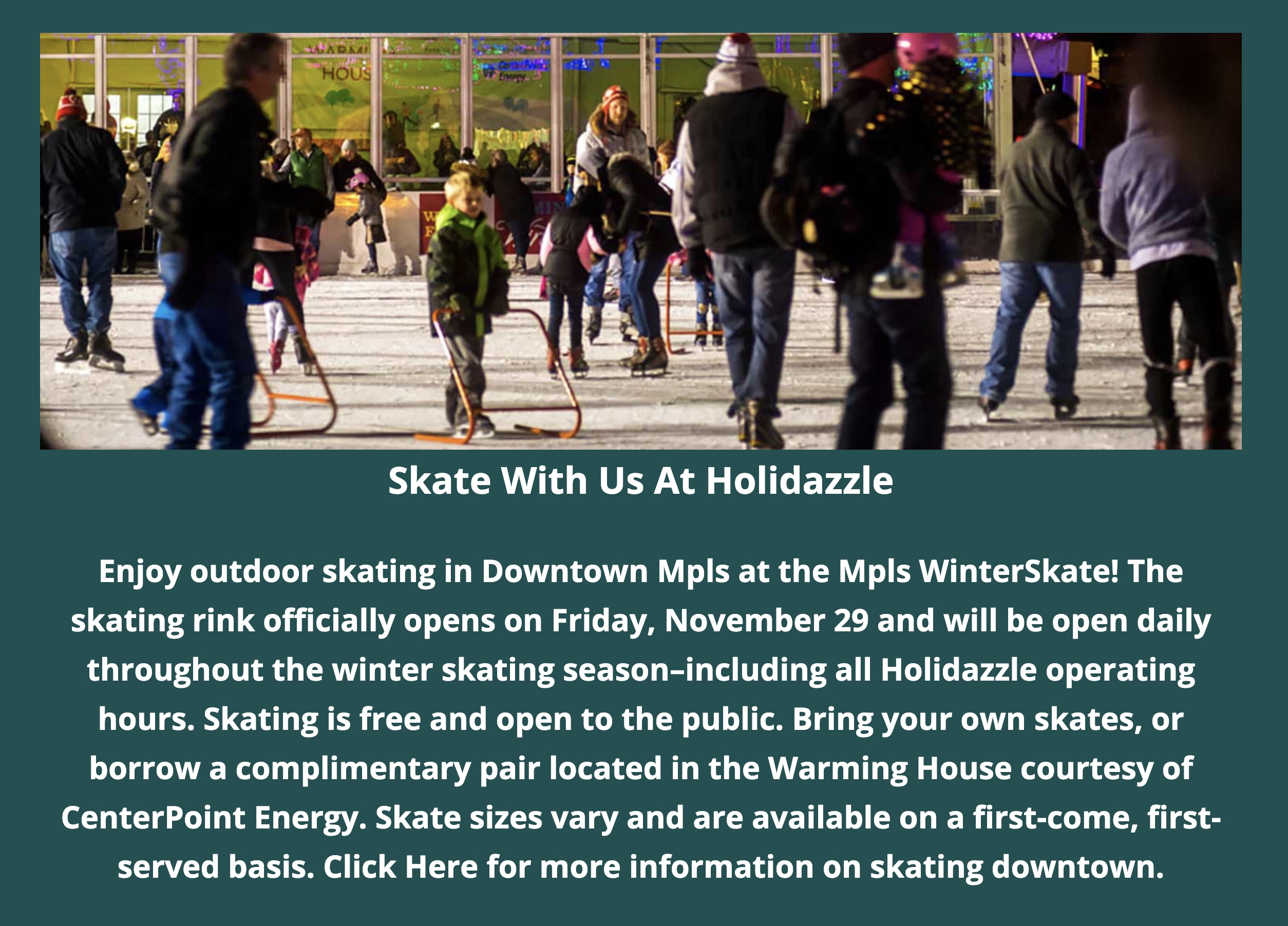 Holidazzle is a Minneapolis tradition, and when you’re here you can expect a Minneapolis-centric experience that includes well-known local businesses and products. Enjoy prepared food and beverages, packaged food, merchandise, free music and other festive entertainment for all ages!